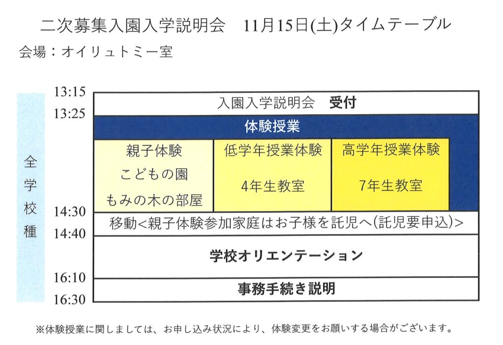 ※二次募集入園入学説明会お申込み締切は11月12日(水)となります。