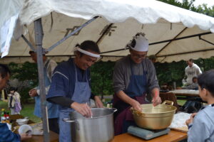 ↑いずみの学校保護者による、おやぢの会出店のフォー