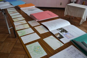 普段はなかなか見られない、児童・生徒一人ひとりが一年かけて作り上げた学びのノートや作品を、各教室いっぱいに並べて皆さまにお見せする特別な日です。担任教師がそばで丁寧に解説しながら、子どもたちの成長の軌跡を一緒に振り返る、他の見学日にはない、貴重で心温まる時間となりました。