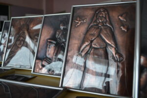 さらに、銅板レリーフの荘厳な人物像や、幾何学模様を彫り込んだ美しい球体工芸。 どれも「ただ作る」のではなく、心を込めて「生きる」ように作られた作品ばかりです。